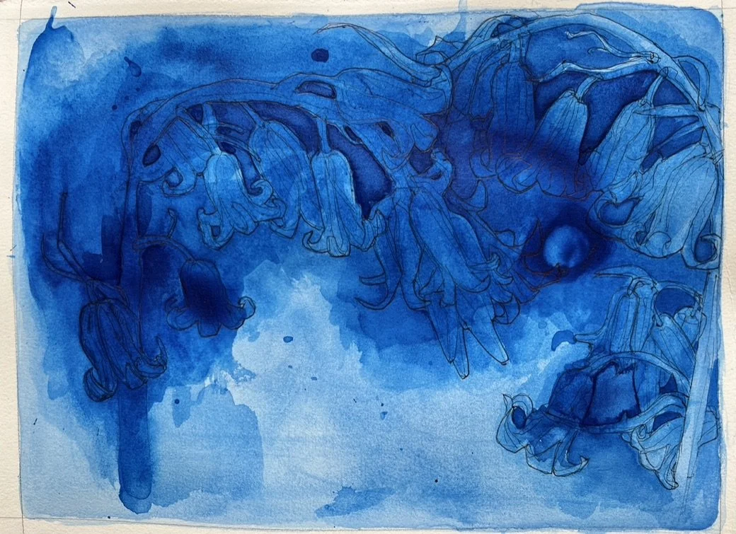 Bluebells 15” x 11” (mixed media on Arches paper)