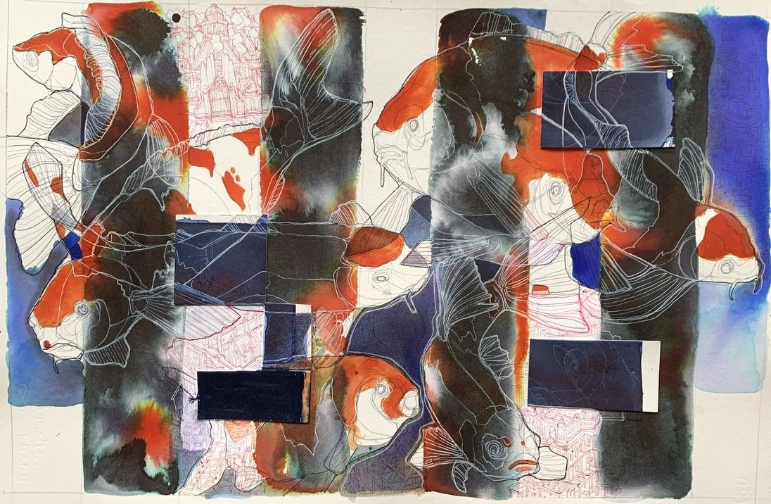 Goldfish 23” x 15.5” (mixed media on Arches paper)
