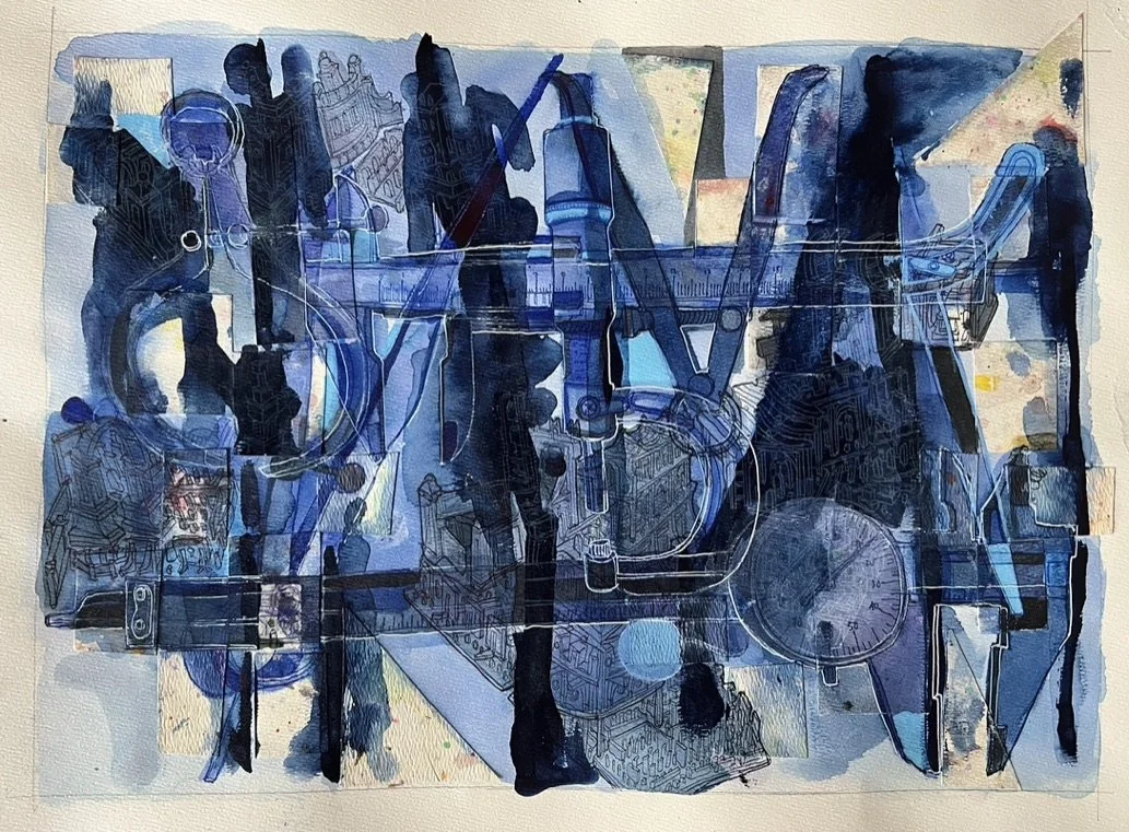 Ultra Blue 22.5” x 15” (mixed media on Arches paper)