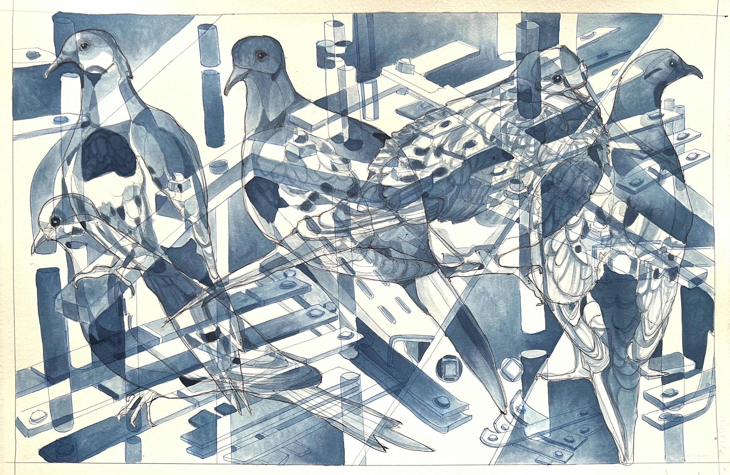 Doves 22” x 15.5” (liquid watercolor on Arches paper)