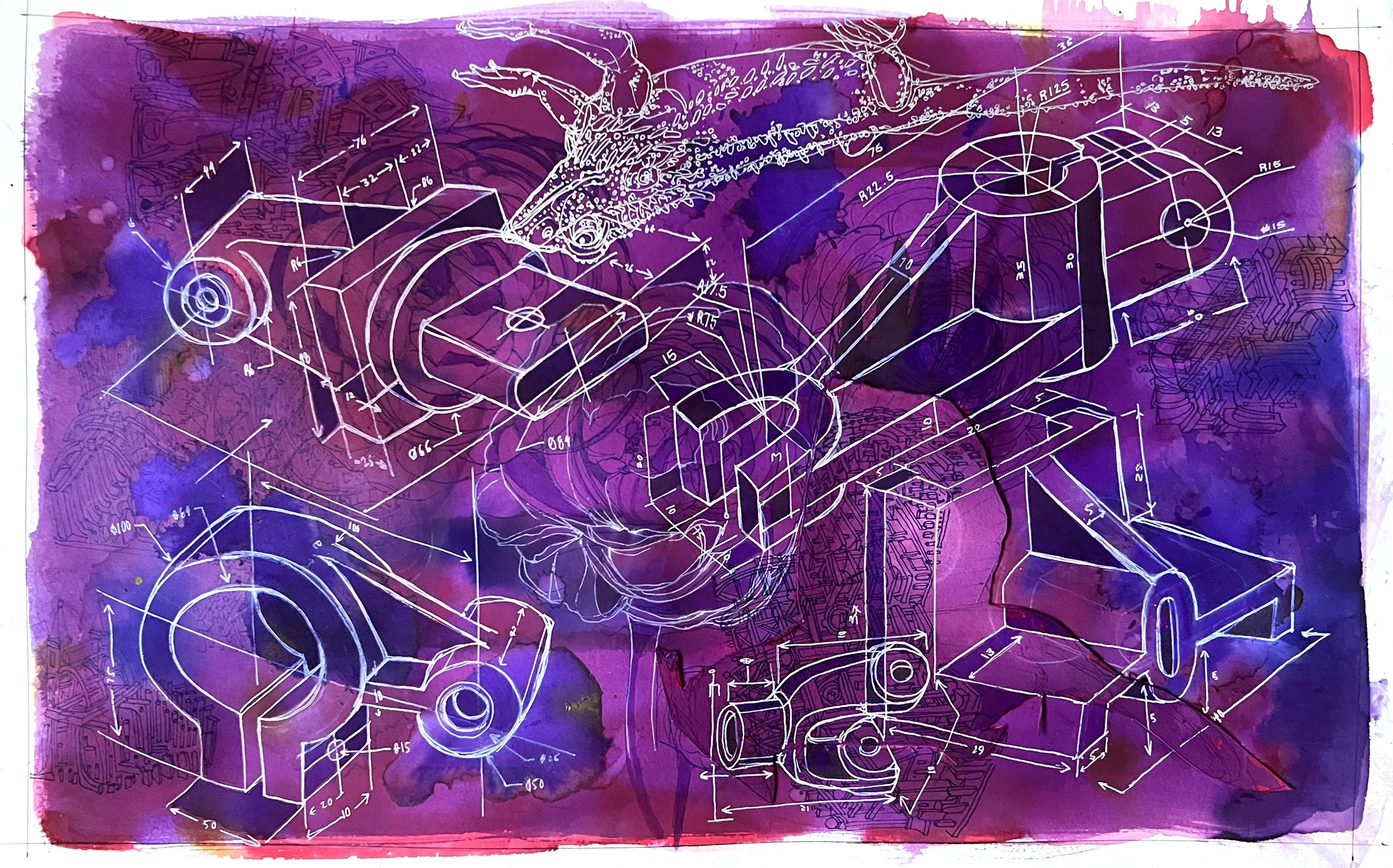 Technical 22” x 15.5” (mixed media on Arches paper)