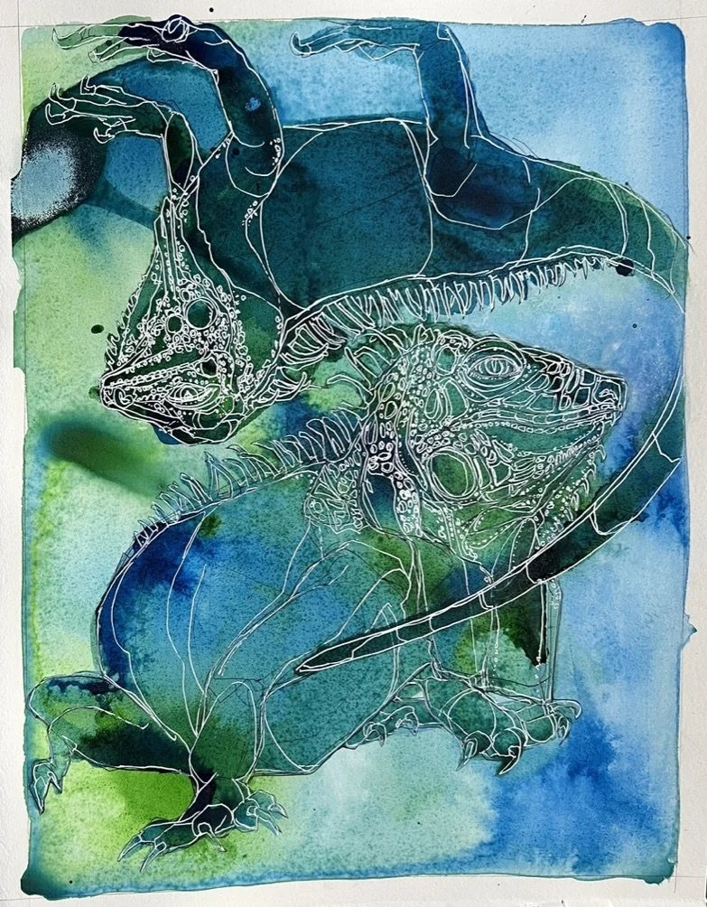 Iguanas 15” x 11” (mixed media on Arches paper)