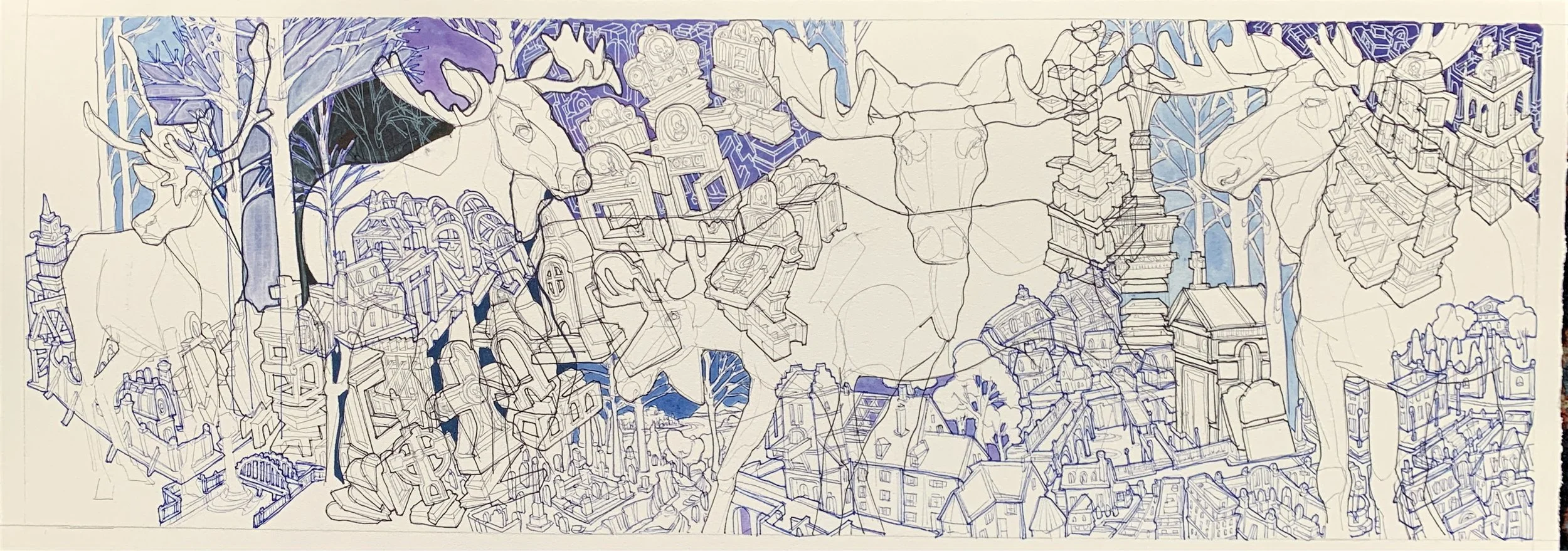 White Moose 30” x 11.25” (ink and watercolor on Arches paper)