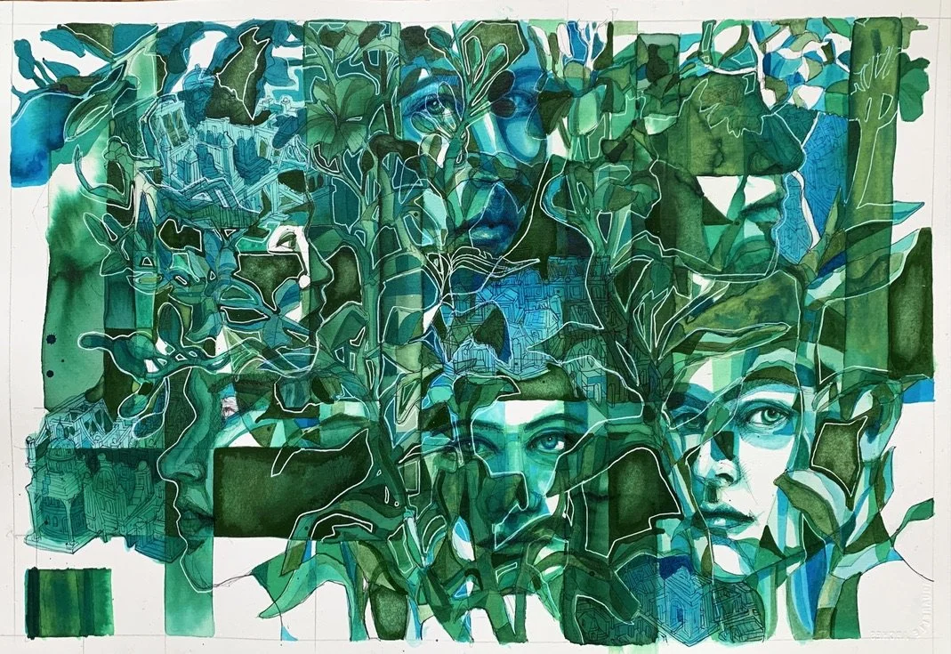 Kudzu 22.5” x 15” (mixed media on Arches paper)